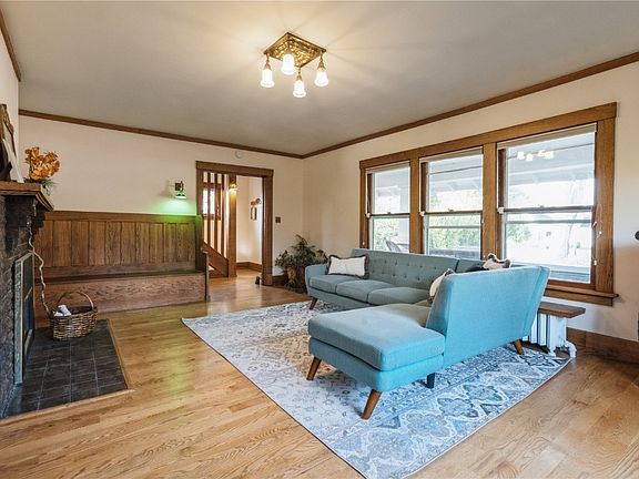 Charm and History with modern updates and convenience. If you love quality and character this home is for you. Pulling into the the horseshoe driveway you are greeted with well maintained landscaping and a private feel with the mature shrub lined property. Walking up the wide stairs to the large covered porch you can imagine morning coffees, afternoon tea, or evening cocktails. Entering in the home the Craftman style shows emaculate attention to detail. The great room ( living room) is expansive and can be set up with multiple living spaces, beautiful glass and wooden cabinetry is built-in flanking the gas fireplace , with another built-in gem storage bench to the right. The hardwood moldings and trim can be seen throughout. The entrance to the oversized dining room contains pocket door so you can separate living spaces. There is built in shelving with glass doors flanking the exterior wall. This space, too, offers multiple uses, can be used as a formal dining room or a family, dining combo. Previous owners used this as their TV room. Continuing on the first floor you have a full bath including jetted, soaking tub, with shower head fixture, an additional bright sitting room with doors to screened in porch. The kitchen has fully updated appliances, including high end gas stove, and granite countertops, easy to imagine wipping up an evening meal with a loved one sitting at the island having great conversation. Right off the kitchen is the first floor laundry with access to back deck. As you walk to the upper level on the detailed and impeccable wood staircase you reach a landing where you can see immediately the pristine original hardwoods through out the upper level. There are 4 bedrooms and a full bath. 2 of the bedrooms are tandem style, which was the norm in the home’s era. This 1912 home is unique in its condition ,the full basement is in fantastic shape. It contains high ceilings and could easily be finished off for even more living space. In its current state it contains 3 rooms and a canning closet. As for heating and cooling, there is steam heat which is actually updated and modern. It has been well maintained and serviced by Fosters Heating and cooling. This home does not have traditional central air. It has a split unit that is “hard wired “ into the coil. This is in the dining room and cools the whole main level. For cooling upstairs previous owners used nothing saying that the circulation and split down stairs kept it cool. There is a large lot with 3 different varieties of fruit trees, a pond, and a and area that is separately privacy fenced for entertaining, a play area , or possibly for a pet. There is a two stall detached garage with a loft area that is tall enough for standing comfortably and could be finished off for more living space . This detached garages driveway is on a side street for easy access and additional street parking. Next to this home is Granger House, a historical landmark. Interesting fact, at one time this home was part of that property. The history, space, and charm of this home are unmatched. It’s a must see.