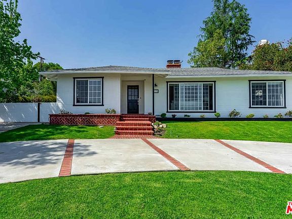 With gorgeous mountain views, this 4 bedroom, 2.5 bath home is located on a large lot on one of La Caada's most sought-after blocks and features light hardwood floors throughout. Upon entering the foyer, the impressive formal living room floods with light and centers on a brick fireplace. Past the formal dining room, is the eat-in kitchen, complete with granite counters, ss appliances & ample pantry space. The family room boasts a 2nd fireplace and access to the idyllic backyard. The master suite features french doors to the patio and a new master bath w/ steam shower! There are 2 additional spacious bedrooms w/ full hallway bath, plus an attached garage converted to a 4th bedroom (not included in sf) with wood floors, sink, mini fridge & custom storage/murphy bed. Valuable upgrades include new roof, tankless water heater, washer/dryer & fully paid sewer connection. This tastefully updated home within the prestigious La Caada School District is a rare find, so act fast!