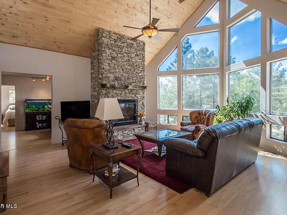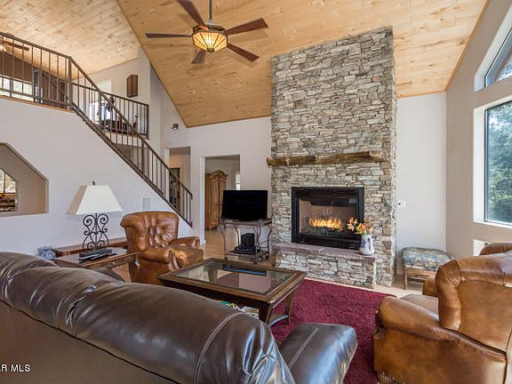 Very well designed and maintained home in the tall pines. Vaulted and open living room with tall viewing windows. Private hot tub room downstairs. Private backyard with tall pines and a water feature. Kitchen is well designed. 4 garage spaces in 2 garages. Refrigerator conveys