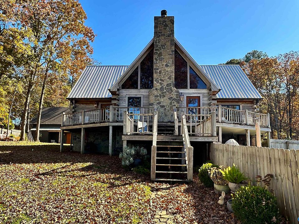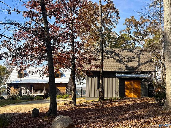 Picturesque 3BR/2BA log cabin on Weiss Lake w/ stunning water views & warm rustic style. Living room features hardwood floors, stone fireplace w/ gas logs, & large windows overlooking the lake. The cozy kitchen shines w/ a chef gas range, quartz countertops, & tongue-and-groove accents. Master suite includes deck access & tiled bath w/ soaking tub & walk-in shower. Family or guests will enjoy the upstairs bedrooms & open gallery overlook the living area. The finished downstairs area provides extra living space, an electric fireplace, & office or bunk options. The large in-ground pool w/ spacious outdoor seating, boathouse, lift, ramp & new 2 car garage provide all you need for lakeside life.