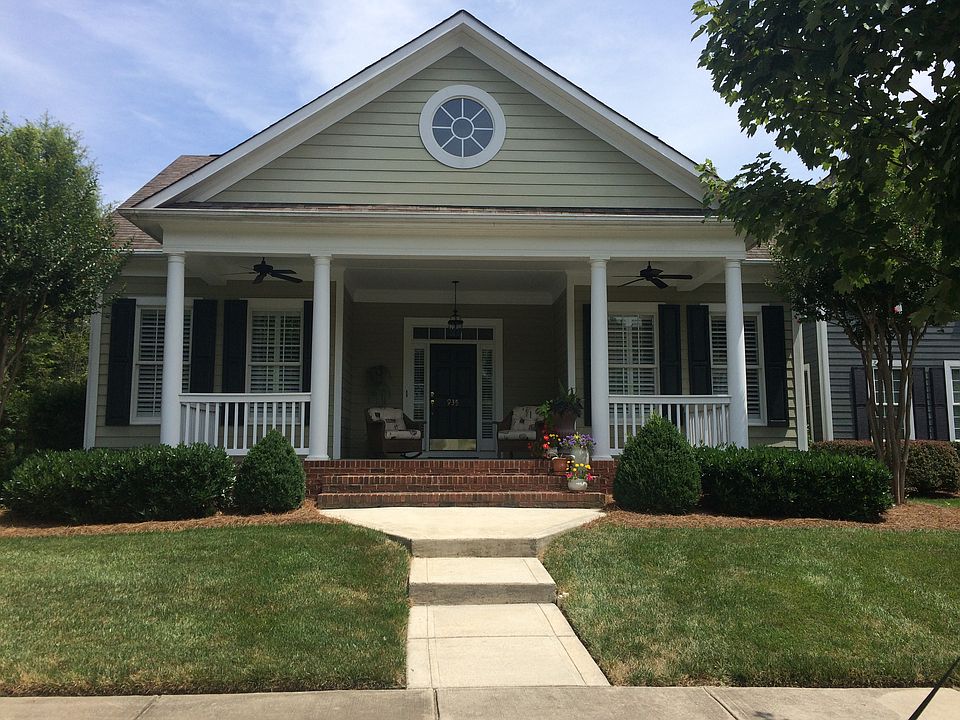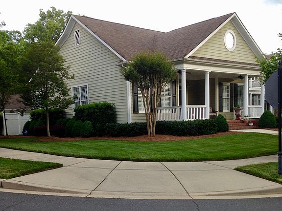 Southern ranch home located on a magnificent corner lot, lavishly landscaped, adjacent to a naturally preserved green space, and located in Baxter Village. Large Charleston-style front porch with fans. Private courtyard/patio with privacy fencing and landscaping. Spacious 2 car garage with ample storage and windows. White plantation shutters, crown molding, and oak hard floors throughout. Bedrooms and family room are carpeted. Formal dining area with stunning crystal chandelier opens into the formal living room. Open concept family room features a 12 foot vaulted ceiling and gas fireplace; open to the kitchen and breakfast area. Double doors lead to the master bedroom featuring a tray ceiling with attached master bath and walk-in closet. Dedicated laundry room with storage. Updated stainless steel appliances. New Lennox HVHC, installed 2016.