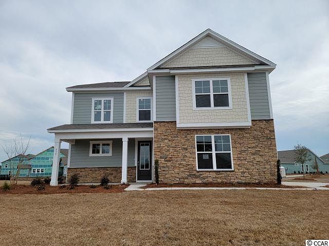This popular plan brings functionality and style together! Stone accents, inviting front porch, and tall entry door with glass. Once inside, upgraded tile floors throughout the living areas creates an inviting space. The large kitchen boasts quartz countertops, island, tile backsplash, stainless Whirlpool appliances including a wall over, gas cooktop, side-by-side refrigerator and a pantry. Owner's bedroom and full bathroom with large separate vanities, 5' shower, and linen closet for even more storage on the first floor! Welcome to Brighton Lakes! This luxurious community includes an array of oversized homesites along with a gated entrance and large community center. The variety of homesites comprise of private wooded views, pond views and convenient cul-de-sac. Brighton Lakes is located off Carolina Forest Blvd. within minutes to Hwy 501, Hwy 31 and River Oaks Blvd. It is extremely close to multiple grocery stores, restaurants, shopping, hospitals and much more including the newly constructed walking paths on Carolina Forest Blvd. stretching nearly 7 miles! *Photos are of a similar Belfort floorplan. (Home and community information, including pricing, included features, terms, availability and amenities, are subject to change prior to sale at any time without notice or obligation. Square footages are approximate. Pictures, photographs, colors, features, and sizes are for illustration purposes only and will vary from the homes as built. Equal housing opportunity builder.)