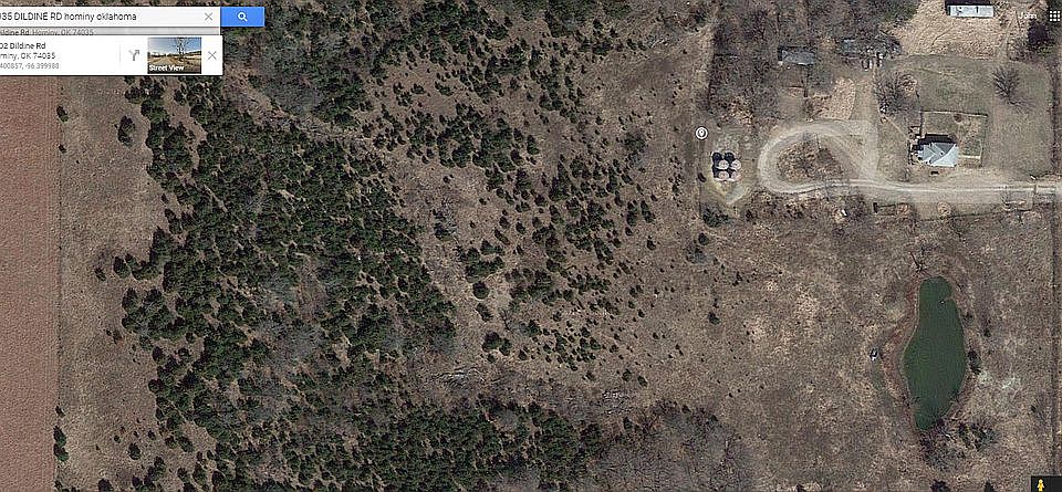 Small house at the base of a hill. Property includes a pond, a horse barn and other structures. Camping area 1/3rd the way up the hill, a beautiful meadow on top of the hill (its a hike). Purchased property to cleanup/remodel and move there, just work too far away to pull it off. If you got these skillsets, you can make this place a great little farm on the edge of Hominy. It has city water, trash, electricity (not sewer). This large a chunk of land (they don't make any more of it) this close to a city is hard to come by and include utilities already ran.