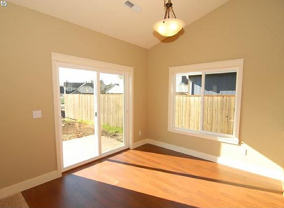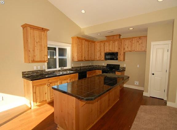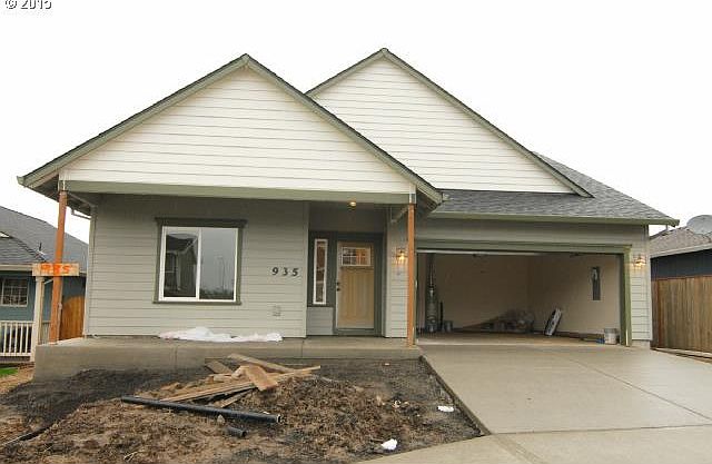 One level living with great room plan with large island in kitchen. Granite tile counters, pantry, laminate flooring in entry, kitchen and dining. Knotty alder cabinets, painted trim, master with bath and walk in closet. Front yard landscaping included. Listing broker related to seller, seller has Oregon real estate broker license.