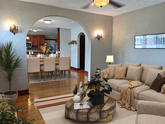 Great location! Traditional bungalow that has been updated and opened up. Relax on your front deck or enjoy the enclosed front porch. Living room with original hardwood floors, arched walkway open to dining room with original hardwood floors and dining room is completely open to updated kitchen with breakfast bar and all appliances. Main floor two bedrooms with hardwood floors and updated full bath with tile floor. Plenty of room for the toys and pets in the backyard, with nice back deck and enclosed back porch makes a great mud room. Upstairs large bedroom and additional attic storage. Garage off the alley.