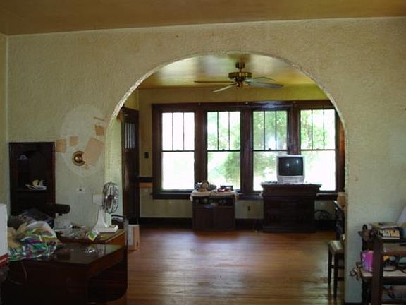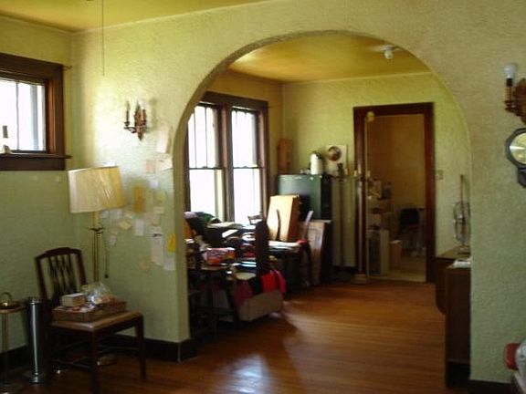 Super fixer upper, charming bungalow with hardwood floors, natural woodwork & woodburning fireplace, needs updating & needs new roof. Laundry chute and the many windows lit in natural light.
