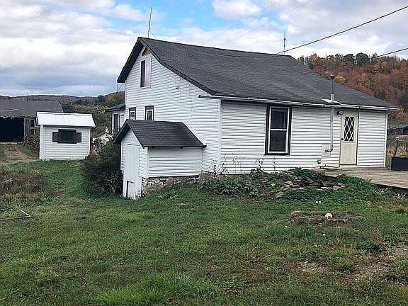 House with out buildings. 30' x 40' metal building. 11.78 acres with partially fenced backyard. Run in shed for horses or livestock. Beautiful Mountain views. North Penn Mansfield school.