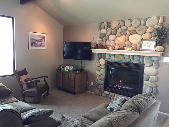 Surrounded by Beauty is this 2 BR,2BA cabin! Open Plan with Cathedral Ceilings;Propane Fire Place in LR includes Dining Area, Kitchen and Living Room. Kitchen has ample cabinets that have been recently painted; cute little Bar; Replaced Counter tops Through Homco; New Stove, Sink and Disposal. River Rock Firplace with Propane Insert.The Master Suite has a King Bed. The Home is partially furn. outside of escrow. Fridge, W/D convey. The wonderful back yard has Aspen Trees keeping it private and plenty of space to entertain or be entertained. How about a little Corn Hole or Croquet and a BBQ? The Ponderosa trees are so Plentiful it will blow your mind. Tons of Parking Space; Room to build a Garage on this 12,708 Sq Ft Lot. Watch closely for the occasional Elk who comes to visit!