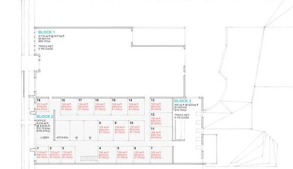 Phenomenal Space for either an Office/Bar/Restaurant or other specialized tenant needs. Triple Net Lease. Beautiful and unique atmosphere and style created by award-winning designer.More customized spaces are available if needed. BLOCK 1 as seen in photo.