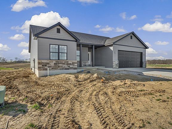 Discover the Leland nestled in the heart of Waterloo's Quail Ridge Subdivision! Step into luxury with waterproof plank flooring gracing the kitchen, dining, great room, and foyer. Enjoy the airy ambiance with 9' ceilings throughout, accentuated by a tray ceiling in the great room. Beautiful kitchen w/ premium granite countertops, adorned cabinetry, and sleek hardware, complemented by a striking center island, walk-in pantry, and exquisite finishes. The versatile combo dining/living room sets the stage for modern entertaining. Conveniently placed, the laundry room adjoins the bedrooms in the hallway. Luxury feel in the primary bathroom w/ tiled shower and frameless glass door. Complete with a 2-car garage, an optional covered 16x12 patio, and a full unfinished basement, this home is set to exceed expectations. Estimated completion: April 2024. Photos for reference; currently under construction.