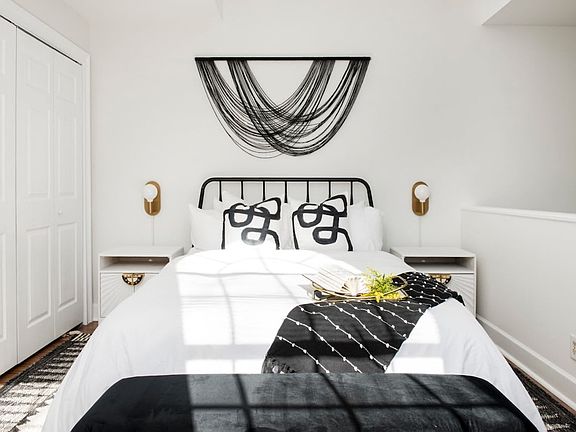 Feel like royalty in this airy two-story abode, newly renovated and furnished in a striking black and white design. Nestled between the street-facing main house and a rear private drive, this home offers reserved parking. The property features an open-concept living and dining area, a bright galley kitchen, and a lofted bedroom, bathroom, and laundry closet on the second story. This home is designed with a keen eye for detail, offering a full kitchen, laundry, fast Wi-Fi, and a smart TV. Enjoy cozy mattresses, 100% cotton linens, fluffy down pillows, and fitted sheets for a great night's sleep. Security is top-notch with Ring doorbell cameras and custom-coded keyless entries, ensuring total privacy during your stay. Dogs are welcome with a fee of $250 for the first dog and $100 for the second. Electric vehicle charging is available for an extra $5 per night. Hot tub access incurs an additional fee, and guests are responsible for any damages. Located in Virginia-Highland, the neighborhood offers a mix of quiet residential streets and a vibrant central area with pubs and restaurants. The southern border on Ponce de Leon Avenue boasts shops, eateries, and entertainment options like the Plaza Theater and Clermont Lounge. Nearby, Ponce City Market and the BeltLine trail provide shopping and outdoor activities, leading to Piedmont Park. Parties are strictly prohibited, with violators facing eviction and a $1000 fine. Quiet hours are from 9 PM to 8 AM, and failure to comply may result in a fine of one night's rent. Indoor smoking is fined $1500 plus ozone remediation costs. Check-in is available 24/7 via custom-coded keypad deadbolt locks, and all properties have Ring video doorbell cameras. Standard check-out is at 10 AM, with late check-out incurring additional fees. The home features fast Wi-Fi, making it remote work-friendly, though a laptop computer is not included.