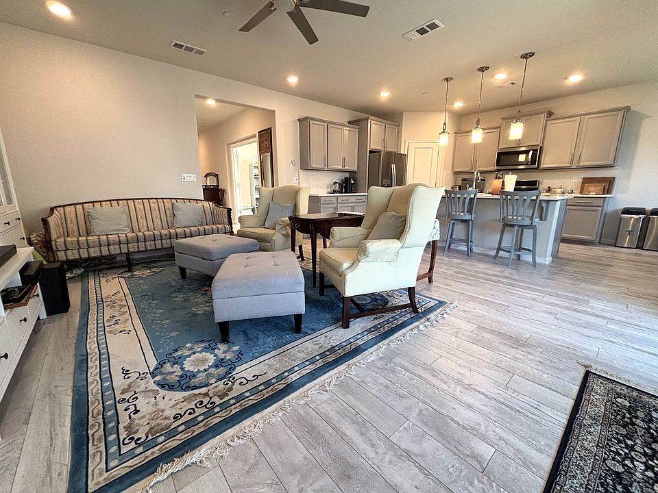 Welcome to this stunning 3 bedroom + Bonus Office, 2.5 bathroom home in the desirable Palmilla Community. This single story home features tall ceilings, laminate floors throughout with two carpeted bedrooms (one with a Murphy bed), and a flowing layout with the primary located on one end for perfect privacy. The primary suite has lots of light coming in from the backyard, a double sink vanity and a large walk in closet. This home boasts all of the amenities! All the appliances come with the home, including the gas stove perfect for a home chef to enjoy in their gorgeous kitchen. a walk in pantry and large island that opens up to the dining and living areas. You can expand the space by opening up the double rear sliding glass doors to the beautifully landscaped backyard, perfect for hosting indoors and out! This home is not only modern at only 7 years old, but energy efficient, with 16 solar panels, a whole house fan to accompany the ceiling fans, a 220 plug in the garage for your smart vehicle, ring camera, and a tankless water heater-great for low water usage! Off the garage is a temperature controlled room perfect for wine storage, or a second office. You will enjoy the convenience of low maintenance landscaping and nearby parks and playgrounds. Just across the street is a lovely view and walking trail. Don't miss out on this incredible opportunity to live in a beautiful home in a prime location! Solar Monthly Payment $100 Pets Negotiable. One-year lease term.. Applicant(s) must have combined gross income 3 times higher than the rental rate and pass criminal background/rental history check. FICO score of 650 or above. All applicants including those with NO PETS must have an active PetScreening profile which can be completed at https bestpm. 12 month lease. No co-signers. No smoking. Tenant pays all utilities. Must complete showing of property prior to submitting an application. Call Angel at Best Property Management, Inc. Starla Vasquez DRE 02119897