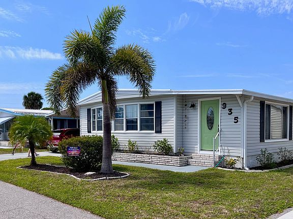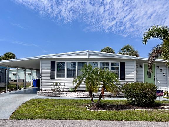 GORGEOUS REMODEL! This extensively renovated 2/2 home located in the Bay Indies 55+ Community sets the stage for what a perfect, affordable home can look like. The tasteful appealing exterior has great curb appeal from the landscaping to outdoor setting for enjoying the beautiful breezes and Florida weather. This is the perfect area for BBQing. Located behind here is the oversized laundry room/storage shed that houses the W/D, new HW heater from Jan 2023 and plenty of room for extras. Entering into the very efficient kitchen which was totally gutted, you notice the excellent use of space with two pantries, new soft close cabinets, a stainless steel undermount farmers sink, open African Mahogany shelving, appliances, a bosch dishwasher, granite countertops and backsplash and a movable island for baking or serving plus all GFI's replaced along with new plumbing. More updates throughout have been vapor barrier, sub floors, new oak laminate vinyl flooring spanning all through the home, new electrical outlets, new A/C from October 2022 in addition to being fully painted and geometric accent walls in living room and dining room for added impact. There is crown molding throughout, new lighting and smoke alarms in each room and an insurable breaker panel. The dining room built-in has been replaced with furniture pieces for more versatile use and entertains seating for six. This open floor plan flows into the living room with a beautiful bay window shining plenty of natural light including two leather sofas. Through a set of sliding glass doors is an enclosed sunroom/lanai with screens, a freshly stamped painted concrete floor, an entrance door from front and a perfect spot for a TV room, home office or giving you extra living space for guests. There is a new mini split A/C unit here. Both ensuite baths have been totally renovated right down to the phone shelf toilet paper holder. New sinks, vanities, faucets, commodes, lighting and walk-in showers got a makeover. The guest bath has two entrances, one off the hallway and one into the guest bedroom giving extra privacy, subway tile in shower with inlays and a linen closet. Both bedrooms are done in beach themed style. They have double mirrored closets with shelving set apart by a window, brand new queen beds and dressers. There is nothing short of top notch features in this home. Bay Indies 55+ Community also leaves nothing to chance when it comes to activities, amenities. There are three heated pools, club houses, tennis, pickleball, concerts, unlimited clubs and more. We are located just 2.5 miles from historic Venice Island with beautiful beaches, shopping, restaurants plus golf, fishing and the intracoastal waterway for boating enthusiasts. Take the plunge! You won't regret it. All listing information given to us is considered appropriate and reliable but should be independently verified through personal inspection by appropriate professionals. Home must be maintained to the Community Prospectus. The lot rent is determined by the community office and covers all amenities offered including property taxes and lawn maintenance.