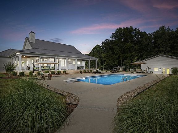 Indulge in your private oasis on 44 scenic acres only 45 minutes from Nashville. This luxury farmhouse blends sophistication with rustic charm and plenty of amenities to enjoy. The chef's dream kitchen features a sprawling island and plenty of countertop space perfect for entertaining. Relax in the expansive master suite with a luxurious en-suite bathroom. Each bedrooms offer private bathrooms. Outside, enjoy the sparkling saltwater pool, spacious covered porch, and panoramic views of rolling hills. Explore your private 1 mile of hiking trails or practice on your very own putting green. Nature lovers, hunters, and equestrians, this farmhouse is a dream. Ample parking and a detached 400 sq ft guest house with full kitchen. Escape the city and embrace tranquility in this countryside retreat.