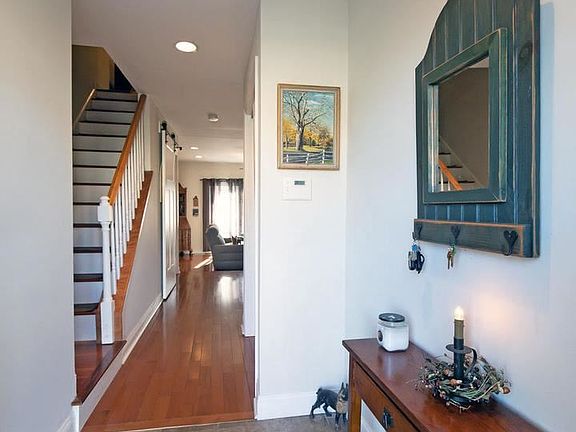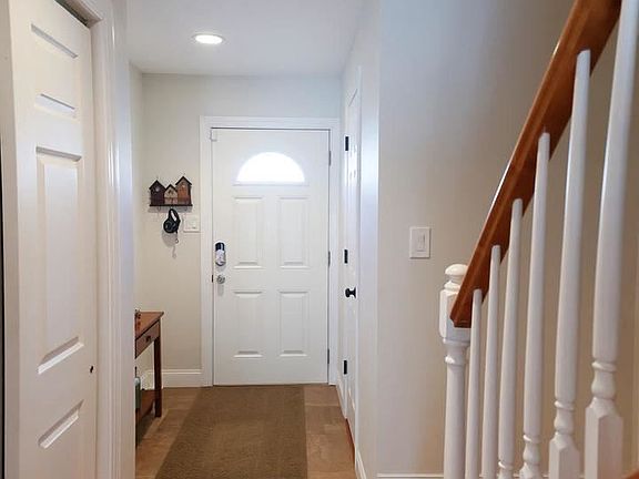 Beautifully remodeled home in desirable Kings Croft. Everything has been done to this home! Starting with the open floor plan for the main level. Kitchen has 42" Maple Cabinets, Full size Pantry, Also Extra Cabinets and Counter space was added. Beautiful ceramic Tile and Backsplash! Upgraded Granite Counter Tops, Stainless Steal Appliances, Window Seat, Ceiling Fan and recessed Lighting. Open half wall with Breakfast bar to Dining Room. Dining Room is open to the Living Room with a half wall and step down into living room. Dining room has Hardwood flooring, a ceiling fan and a programmable Thermostat. Also, a sliding Barn Door to the basement. Step down one step to the Living room with Hardwood flooring, Gas burning fireplace, recessed lighting and a ceiling fan. Slider door opens up to the fenced in Paver Patio in the back yard with the pool in back! (no neighbors in the back). Powder room on main level has also been totally redone. New Wood Staircase going upstairs to the two extra large bedrooms (this home's square footage is the same as some 3 bedroom homes that are the same model, their bedrooms just smaller) Two totally redone bathrooms, newer vinyl plank flooring installed recently throughout the 2nd floor. Bathrooms are ceramic tile floors. Windows are the double hung, pull in to clean windows. Laundry in between the bedrooms on 2nd floor! Front loader Washer and Dryer. Master has a Large Walk in Closet with added shelving and a Window seat. Second Bedroom has full wall closets with added shelving. Six Panel Doors Throughout. Recessed lighting on all three levels, Baseboards and all the 5" baseboards throughout! Basement is partially finished with carpet on one side. Unfiinished side has plenty of storage! An Ezbreeze system to circulate the air in the basement. Basement is used as a Family Room. Association covers, Water, Exterior Building Maintenance, Lawns, Trimming, Gutter cleaning, trash, Snow Removal, Termite inspections, Pool, Tennis, Club House.