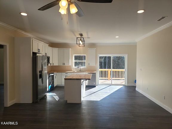 Brand New 2 level home with 4 total bedrooms on 1.1 acres of land in the Kings Hill Community with 3 additional lots available. Conveniently located within minutes of Watts Bar Lake and the Tennessee River. The main level offers an open floor plan with a split bedroom concept. 3 bedrooms and 2 full baths. The lower level includes a 4th bedroom and additional bathroom as well as an office, and huge recreation room. The main bedroom/bath has double sinks, a gorgeous tile shower and a large walk-in closet. The beautiful kitchen has white shaker cabinets, granite counter tops, stainless appliances to include the refrigerator, range, dishwasher and microwave. The Island bar gives an extra workspace and storage for the household chef. The laundry closet is located on the main level
