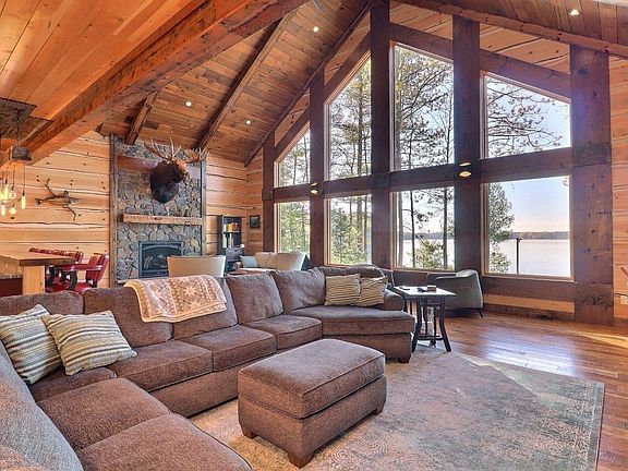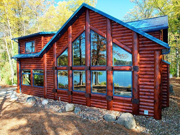 Spectacular cabin located on Medicine Lake of the coveted Three Lakes Chain! You’ll find 198’ of beautiful, level sand frontage on 1.32 wooded acres. Play in the ripple-sand where you can walk out over 100’ from shore and safely be in chest high water! The cabin was built in 2019. The meticulous craftsmanship can be seen throughout. Enjoy the vaulted ceiling in the great room, adorned with beams, live edge pine boards and chinking to create the coziest feel as you stare at the lake and enjoy the fireplace. If entertaining is your thing, you’ll appreciate the fantastic kitchen with granite countertops. Game in the sunroom or go outdoors and sit around the fire on the flagstone patio. There’s plenty of places to sleep. There are 5 large bedrooms and 3.5 baths for your guests and family. Storage is plentiful with a large mudroom, ample closets, 2.5 car garage and an additional detached garage. Western exposure with spectacular sunsets completes the package!