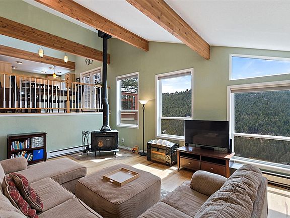 You don't have to settle in this highly sought-after price range. Sweeping views from most rooms! Interior has been totally updated from the newer kitchen with granite counters to the newer baths. The open floorplan and soaring ceilings make the home feel especially open and airy. The great room is large enough to segregate into multi-purpose areas. The wood stove adds ambiance and functionality. There is a main level bedroom and bath with the master just ?? a flight above. The master has its own private deck and bathroom. The lower level features laundry space, a 3rd bedroom and a storage/mud room that leads to the newer garage. Need more storage? There is a large storage/shop space adjoining the garage as well as a storage area over the garage accessed off the dining room deck. Home feels much newer and an abundance of windows make the home very light and bright. Less than 5 minutes to I-70.