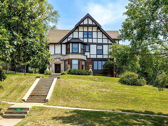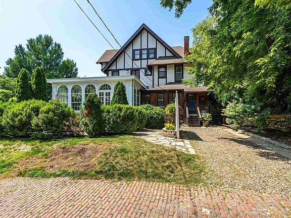 Fabulous Tudor home built by renown Davenport architect Parke T. Burrows as his family home. With Incredible attention to details throughout this restored home has a beautiful mixture of quarter-sawn oak and cherry hardwood floors, quarter-sawn woodwork throughout along with 4 sets of pocket doors, remodeled kitchen, 3 complete floor to ceiling bathroom remodels, hot water heater in 2017 & tankless electric booster added for remodeled bathrooms w/ tubs in 2021. boiler (1997)-updated since with new zone valves, pumps, & expansion tanks, attached 2 car heated garage, riverviews and the list goes on... As you enter this home the dramatic entry with lead glass windows welcomes you into the foyer with built-in bench & magical staircase. The main floor features a den office with decorative fireplace; living room with hand carved floor to ceiling mantle & built-in bookcases; dining room with wainscotting that opens up to the light-filled solarium, gourmet kitchen with butlers pantry and back hall entry. The 2nd floor features a wonderful master suite with Dressing room & remodeled bath; 2 additional bedrooms; full bath and 2nd floor laundry. The 3rd floor is finished with a family room/entertainment area with kitchenette area; studio/craft room; big bedroom and a bathroom. The basement has a rec room, workout room and full bath with storage space. Outside enjoy your 3 patios and decks; brick walkways, extensive landscaping, fenced side yard and GORGEOUS views!