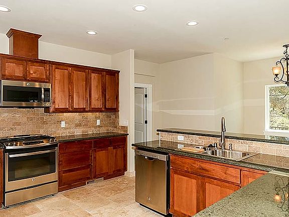 Beautiful brand new custom home on great lot in desirable Morgan Ranch. Open and light with flowing floor plan. Great for entertaining! 3 bedrooms, 2 baths. Large open kitchen with tile floor, granite counters and lovely wood cabinetry. Living room has coffered ceilings, wood floors and Gas log fireplace with stone hearth and wood mantle mantle. Glass sliders to large deck with nice local view. Separate dining room with wood floor. Master bedroom has glass sliders to back yard local view. Spacious Master bath has stone floor, jetted tub and separate glass/stone shower, and double sinks. Laundry room with granite tile, wood cabinetry and sink. All this and a 3 car attached garage.