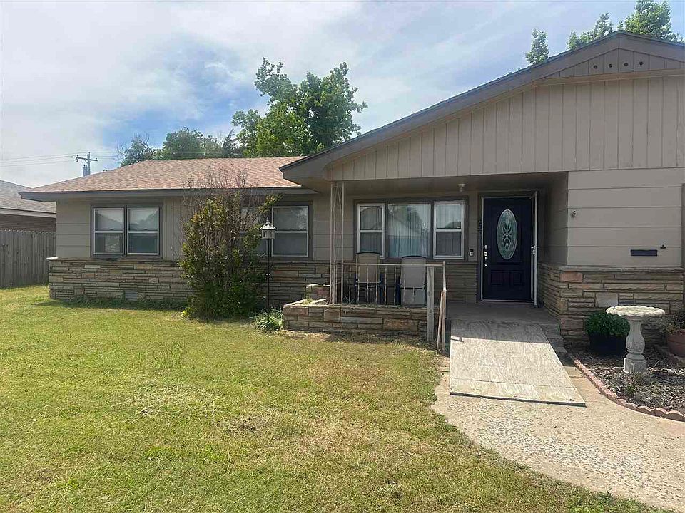 Great opportunity in Blackwell! 3 bed 1 bath with attached garage. Handicap equipped renovated bathroom/shower. backyard with equipment shed. Basement/storm shelter located in the garage. Being sold "as is". Flooring issues exist in kitchen. Close proximity to local stores and restaurants!