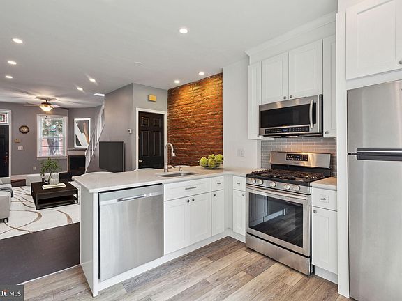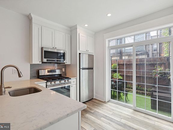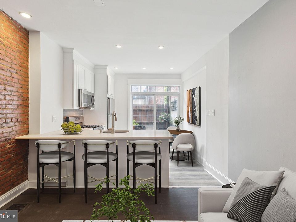 Modern updates blend with original character and a prime location in Philly's vibrant Fairmount neighborhood to create a hidden gem at 935 N Bambrey St. This 2-story home offers 2 beds, 1 bath, an idyllic patio, and newer HVAC. A quiet block leads to the classic red brick exterior, where a lush tree adds curb appeal. Inside, natural light pours into the open and airy main level. Charming touches are displayed in the exposed brick walls, hardwood floors, fireplace, and glass-stained transom window over the front door. The gleaming all-white kitchen was renovated in 2019 and is fitted with shaker-style cabinetry, Samsung stainless steel appliances, quartz counters, and a tile backsplash. Off the rear, a sliding glass door leads to a serene garden escape where you can dine under the stars and relax with a glass of wine. Up on the second level, two large, bright bedrooms with hardwood floors and generous closets sit at the front and rear, while a new full bathroom is at the center. Completing the home is an expansive basement with the laundry, lots of storage space, and the potential for future finishing. 935 N Bambrey St's fantastic Fairmount location just off Girard Ave earns a Walk Score of 91! Tons of local restaurants, friendly shops, and popular markets are within a few blocks. Neighboring Brewerytown also has lots to explore, and landmarks like the Museum of Art, the Philadelphia Zoo, and Kelly Drive are close. Plus, there's easy access to Girard College, public transit, and I-76. Schedule your showing today!