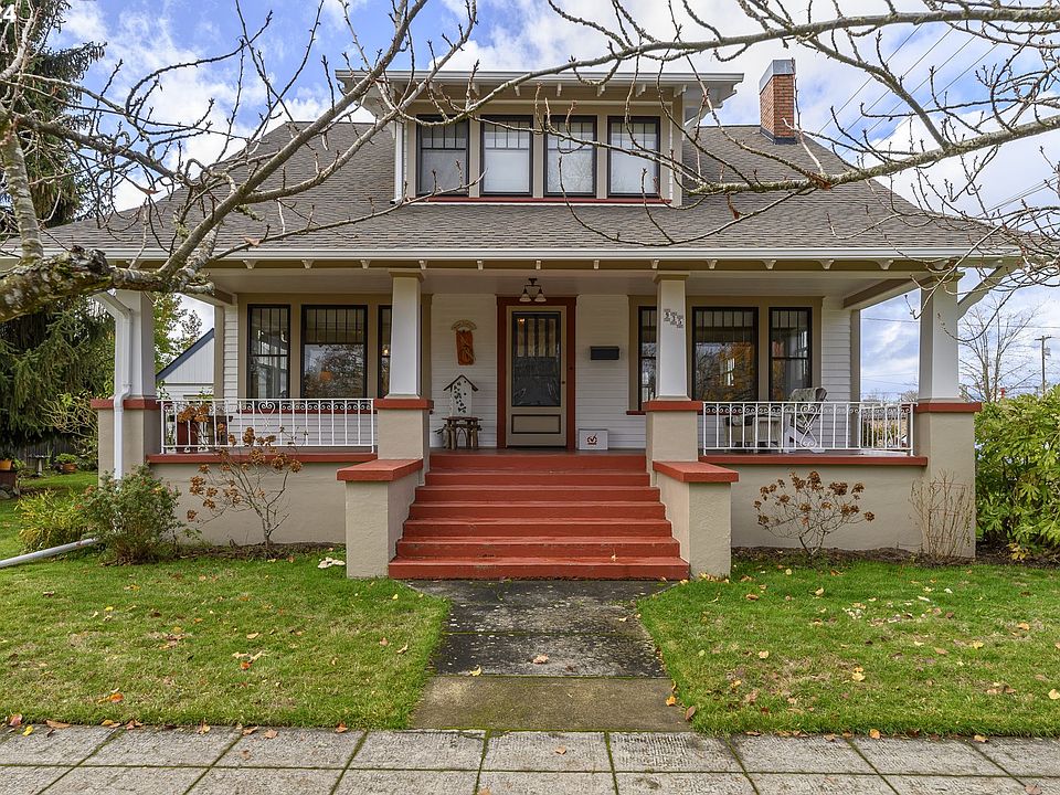 Remarkable 1926 Craftsman style home & separate ADU seamlessly blend historic details with modern updates. Enjoy the wide, covered porch with a touch of nostalgia. Entry foyer offers a greeting space, walk-in coat closet and leads to the stunning living room or dining room. High ceilings, original wood windows and trim/molding showcase this lovely 4 bedroom, 2 1/2 bath marvel. Rejuvination Lighting has been utilized to maintain the craftsman home style. Beautiful sunroom offers a relaxing moment with a book and coffee. Kitchen updates include Marmoleum Click Flooring, brand new SS appliances, quartz counters and french doors. Along with room for a breakfast table. Original refinished oak floors and glass knobs are a few of the time honored accents special to this home. Solid wood staircase treads have been refinished and fir floors upstairs are well preserved. Each of the 3 bedrooms have walk-in closets with tons of storage. Don't miss the attic access door in one closet that leads to an addl storage room. While you're there, admire the pristine, original bathroom with pink accents! There isn't another one like it. Storage is abundant throughout the house; closets, cabinets, shelves and actual rooms to store all those Christmas decorations. The full basement boasts a huge family room, large bathroom, utility area, 4th bedroom and several storage rooms. The family room provides an extra large space for gathering. Detached garage and covered patio are just out the back door with access to the ADU. The beautiful 1 bed/1 bath ADU is completely separate from the main house with its own driveway, entry and water/sewer and electrical hook ups. New flooring 2 years ago and a newer hot water heater. Full kitchen, dining and vaulted living room. Loft area provides extra storage space. Utility closet with washer/dryer. Slider leads to covered private deck. ADU is a great source of extra income or extended family housing. This property is one of a kind.