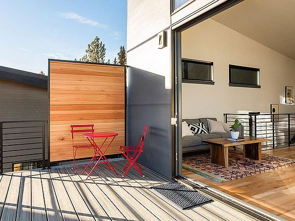 Our Model Home-Located on Bend's coveted westside, Hiatus Roanoke features ten 2 bedroom 2 bath energy efficient and beautifully designed homes. Hiatus Roanoke high performance homes are efficiently designed with two stories and a finished garage. The homes feature stunning views of Drake Park, Downtown Bend, Mt. Bachelor and The Old Mill District's iconic smokestacks. These high end homes also include engineered hardwood flooring, quartz countertops and a standing seam metal roof. Join the small living movement with one of the most energy efficient homes on the market. Our two bedroom homes feature large windows, vaulted ceilings and expansive full glass doors that let the light flood in. The second story deck makes for sweeping views no matter the location. These energy efficient homes are built with non toxic materials and feature a high efficiency ERV clean air exchange system. All this makes these homes 40 -50% more energy efficient than a home built to current building code.