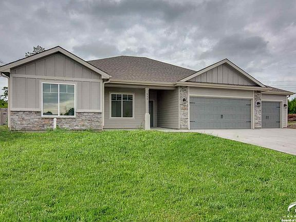 Popular ranch floor plan w/ 3 car garage. Oversized lot, modern finishes. Master closet is storm room for shelter. Open concept. Covered patio. Gas range in Kitchen. Finish date = Sept 15.