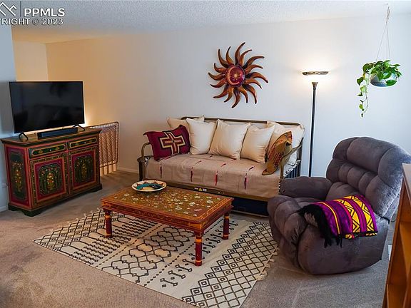 Welcome to this beautifully remodeled 2 bedroom, 2 bathroom condo in the highly desirable Cheyenne Mountain School District. This home boasts an impressive remodel with stylish finishes throughout. The open-concept living and dining area provide a warm and inviting atmosphere for entertaining or relaxation. You won't be able to miss the incredible custom mural on the dining room wall that is a gorgeous reflection of our beautiful city. The spacious bedrooms offer plenty of room for rest and relaxation, and the beautifully upgraded kitchen and bathrooms are sure to impress. Enjoy the convenience of being close to shopping, hiking in beautiful Cheyenne Canyon, walking distance to Bear Creek Park, and a variety of dining and entertainment options within the area. Don't miss out on the opportunity to make this stunning condo your new home!