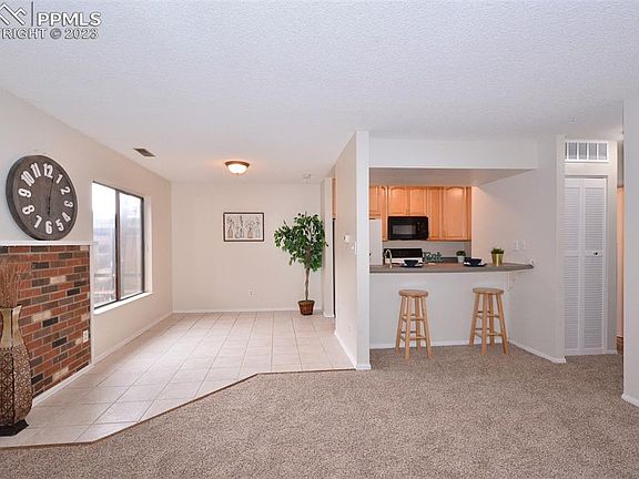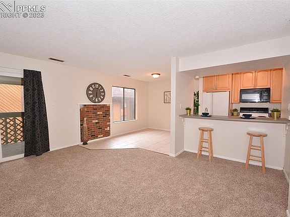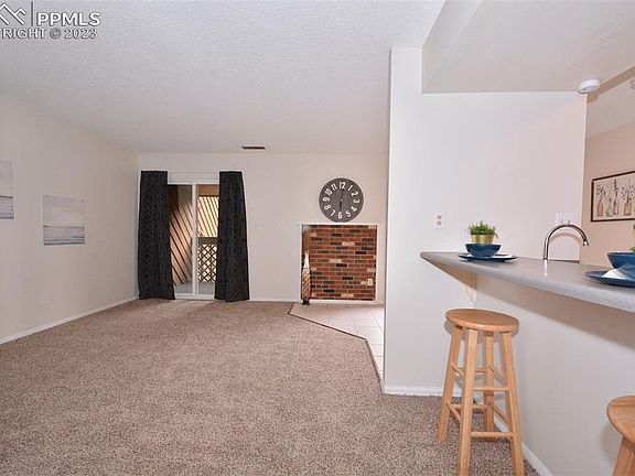 Great 2 bedroom condo in Cheyenne Mountain D12! New carpet, paint, and closet doors! Walk in to your large Family Room with walk out patio! Turn to the left and find dining room and kitchen with tile flooring for easy cleaning. All appliances stay! Kitchen has painted cabinets with solid surface counter top including a bar area for eating breakfast! Powder Room on the main as well for guests! Head upstairs and find 2 large bedrooms and another full bathroom. This condo has plenty of potential and would make a great rental for investors as well! Welcome home!