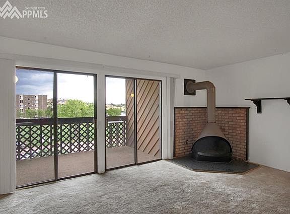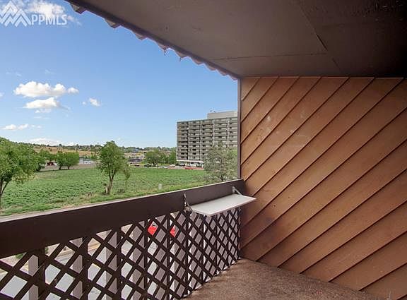 Cozy end-unit condo in conveniently located Skyway! So much to enjoy in this 1 bedroom, 1 bath condo where you can pick your new carpeting and it will get installed before move-in! The large living room has two sliding doors leading to your own private balcony with mountain views! The fireplace is the perfect place to gather around on chilly evenings! The kitchen has tile flooring and loads of cabinet and counter space for you to stay organized! A breakfast bar provides plenty of space for seating and there is a separate dining area adjacent to the kitchen. The large bedroom has a walk-in closet with a washer and dryer - so convenient! The full bathroom can be accessed from the hallway as well as off the bedroom closet - great for privacy when you have guests in the living area! Some amenities that you can enjoy are outdoor gathering/BBQing areas, an outdoor pool and hot tub, a storage unit, an assigned parking space and a community laundry area. Close to downtown, Ivywild, Old Colorado City and the Broadmoor the location can't be beat! Come and take a look as this one won't last long!