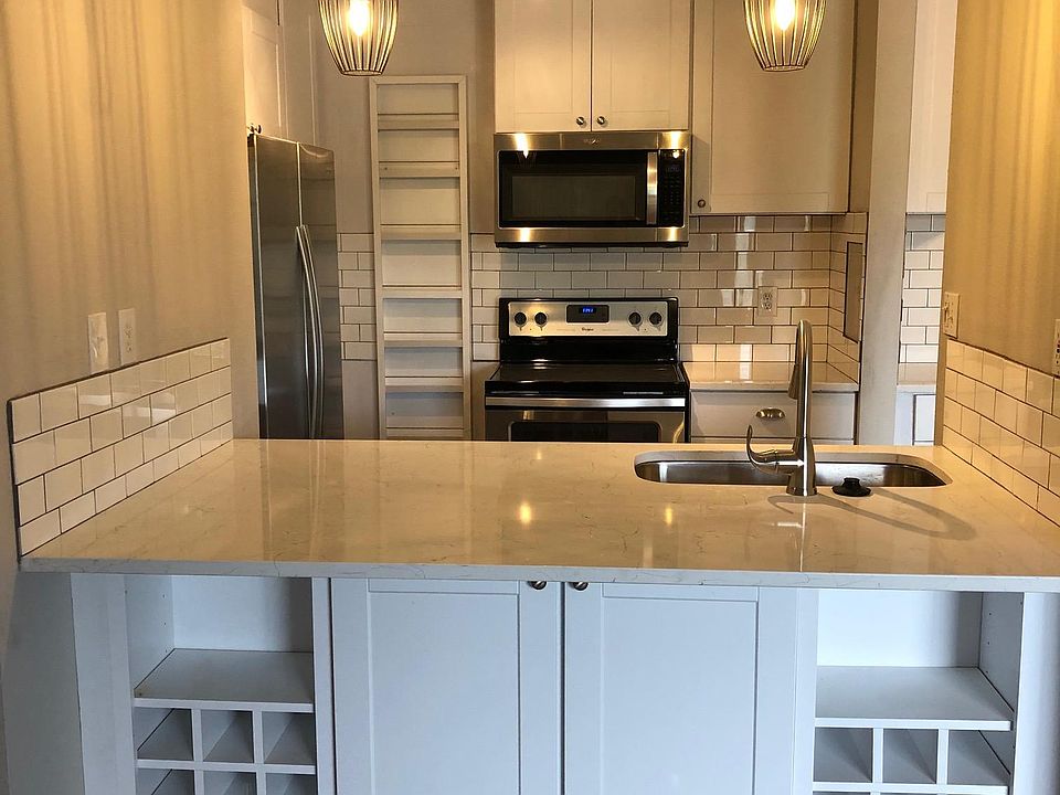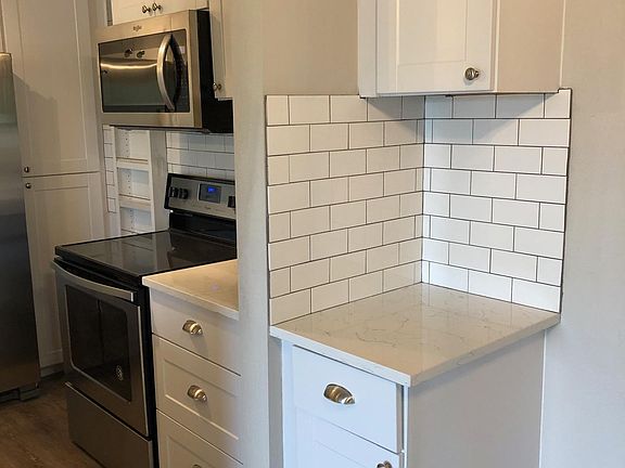 2 bd/1.5 ba 1036 sq. ft 2 story corner unit condominium. Newly remodelled. Stunning redesigned kitchen with quartz countertops and stainless appliances. Solid plank floors throughout. Pot belly stove in living room. Balcony/deck with mountain views. Indoor swimming pool. District 12 schools within walking/biking distance. Close to some of the cities finest walking and biking trails. 12 month lease.
