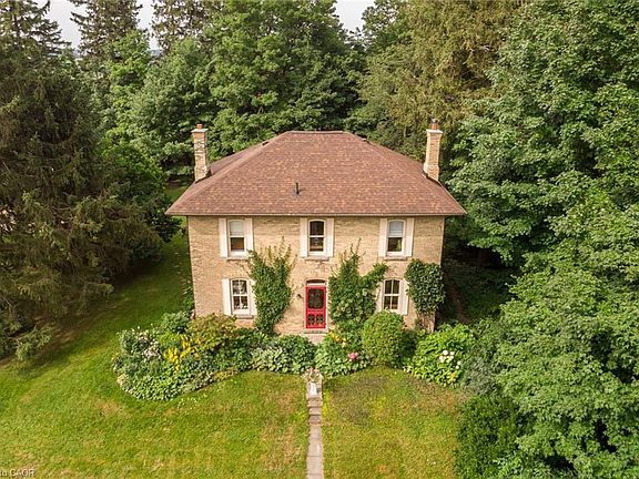Situated on a beautifully treed 2 acre oasis right on the edge of town , this character home and property itself offers a lot of potential and possibilities. The main house at the front was built in 1911, which was seamlessly added onto the original homestead built in the 1850's. Almost 3000 square feet of finished living space, currently configured with 4 bedrooms and 3 bathrooms. Large principal rooms. Be sure to check out the online floorplans and virtual tour. The huge windows and original wood trim, beams and wood floors - well , let's just say they don't build them like this anymore. Definitely one you have to see in person to appreciate. Detached garage. Brand new heat pump heating/cooling. There is even high speed fibre optic internet here. Property will also be of interest to investors and developers.