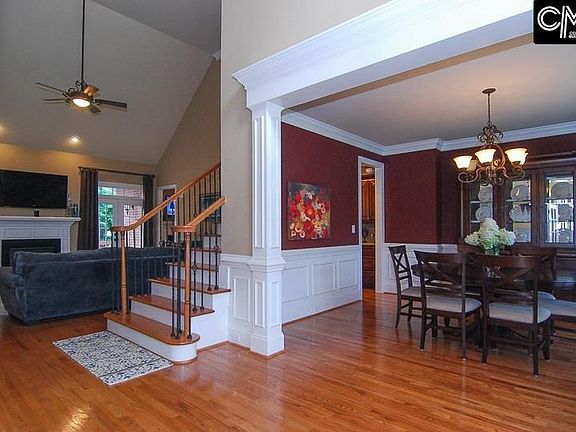 - Living Room: Fireplace, Floors-Hardwood, Molding, Ceiling-Vaulted, Ceiling Fan, Recessed Lights