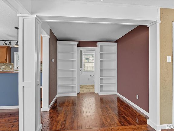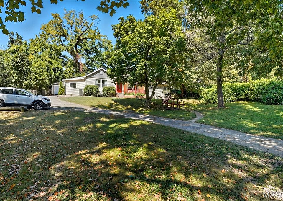Enjoy your own private oasis while staying close to everything! This spacious 2 bed 2.5 bath home is filled with character and sits on nearly a half-acre beautifully landscaped lot. Lots of wonderful outdoor spaces to relax and entertain, including a covered front porch, rear deck, and private patio area with pavers and old brick oven that serves as a cozy fire pit area. Easy highway access and near Lindenwood University, a grocery store, shops, and restaurants add convenience. Through the front door you'll find gleaming hardwood floors flowing throughout main floor. There is an office/library area with bookcases, hall bath with shower, a large living room that flows into an open concept kitchen, and dining room or den area that is filled with narural light. The primary bedroom suite is large and has a walk-in-closet, wood burning fireplace, a nice sitting area, and large bathroom with double vanities. Bedroom 2 is a good size and also feaures a walk-in closet. The partially finished basement has ample storage space, a tiled utility sink/pet washing station, and another half bath. There are egress windows in the basement, so a bedroom could be added in the future with ease. There is an oversized detached garage/workshop and additional parking space. Set your appointment today!