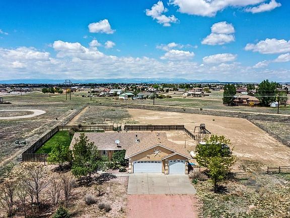 Nice ranch style home on over 2 acres! Open floor plan with split bedrooms. The kitchen has plenty of cabinets and a large breakfast bar. The master bedroom has 5 piece bath with jetted tub. There are two pantry's, on in the kitchen area and the other in the laundry area. The living room has a wood burning stove. The basement is partially finished with 2 bedrooms and a bathroom with plenty of storage space. The covered patio offers mountain views and easy nights in the hot tub. The front porch is covered with nice bushes and trees in the front. RV parking with enough room for all your toys! Horses will have enough room to roam! Sitting in a quiet cul-de-sac, on a paved road, close to excellent D70 schools within walking distance. The grape vine in the back yard as well as an apple tree. The kids play set stays as well! The entrance to the Pueblo Reservoir is 1 minute away!