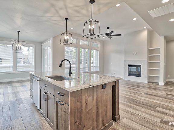 Stunning NW Meridian single level home with 3 bedrooms, 2 bathrooms, a separate office, and a 43' RV Garage. As you step inside, you'll be greeted by vaulted ceilings and a bright and airy great room that's perfect for entertaining. The spacious kitchen features beautiful granite countertops, stainless steel appliances from Thermador and Bosch, an appliance pantry, and ample storage space. The master suite is a true retreat, with a large walk-in closet and a spa-like ensuite bathroom featuring a luxurious soaking tub, dual vanities, and a walk in shower. Other highlights include a large laundry room, custom marble fireplace, and an oversized 2 car garage. The backyard is fully fenced and beautifully landscaped with a large covered patio.