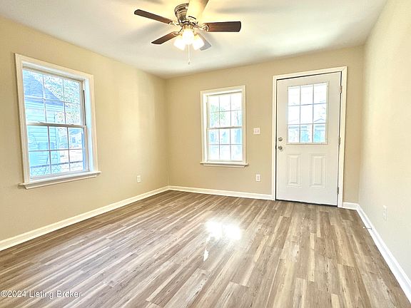 Incredible Value! This adorable Bungalow-Style home is the perfect gift this holiday season, and comes jam-packed with a sleigh-full of updates: **New Kitchen**New Bath**New HVAC**New Water Heater**New Flooring**New Deck**Fresh Paint**New Switches, Outlets, Light Fixtures**. Step inside from the Covered Front Porch to discover Brand-New LVP Flooring and Replacement Vinyl Windows that run throughout for a maintenance-free lifestyle. A Fully Remodeled Eat-in Kitchen sits in the heart of the home and boasts Contemporary Cabinetry, Modern Tile Backsplash, Natural Butcher-block Countertops, Recessed Can Lights, plus a New Stainless Steel Dishwasher, Range and Microwave. You will love the space for a four-seater table found in the dedicated Dining Area. Two spacious bedrooms are centered around the Refinished Full Bath that sparkles like fresh snow and comes equipped with a stunning Tiled Tub-Surround, New Vanity and New Toilet. BONUS: 1st floor laundry hookups provide a touch of modern convenience. Step out back to find a Brand-New Deck overlooking a Fully Fenced Backyard that includes a Handy Shed and a dedicated Parking Pad. Just minutes from I-264, University of Louisville, and Churchill Downs, you'll have the best of the city at your doorstep at an extremely reasonable price point. Make this house your "Home for the Holidays" and start the New Year in style!