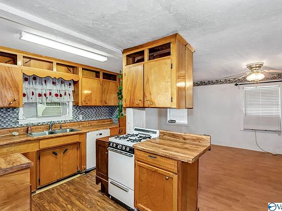 Enjoy peaceful country living convenient to Scottsboro, Guntersville, Hampton Cove, Huntsville and more. Home features 3 bedrooms, as well as a study or 4th bedroom and 2 full baths. Recent maintenance to include metal roof installed in 2009, new gutters in 2018, vinyl siding, new dishwasher in 2018, new fan in dining room and front bedroom in 2018, steps in back installed in 2018, original pine wood flooring in living room under existing flooring. Kitchen has gas stove, as well as hookups for electric. Canning room (back porch) has gas stove and sink and adds another 130 sq.ft. that isn't included in the total sq.ft. of the home. Two detached sheds.