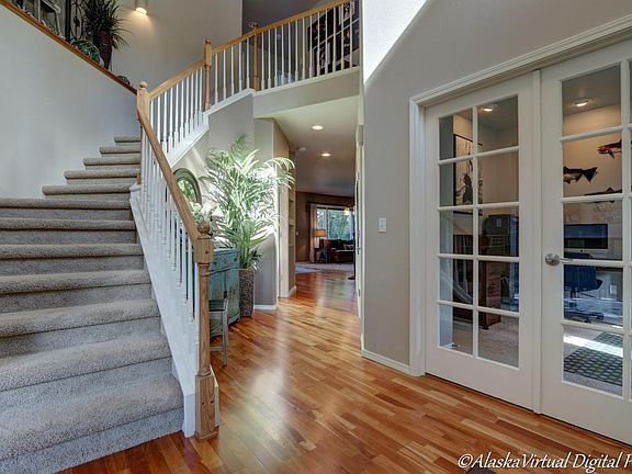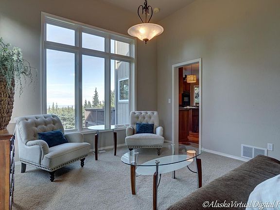 Your own mountain retreat! Exceptional inlet and mountain views. Located in a quiet neighborhood w/access to parks and trails. This home is immaculate--natural cherry, granite, UV treated windows, wind resistant shingles, 6-burner Viking cooktop, double oven, MBR w/ jacuzzi, body spray shower. Separate office and extensive rec room! Security system. Fenced yard w/dog run. Lots of parking for toys.