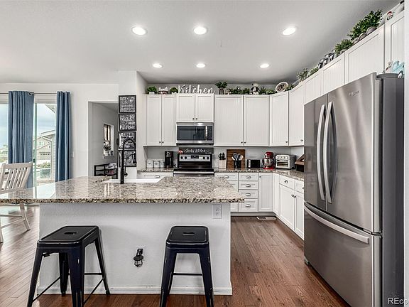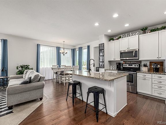 Situated on a cul-de-sac just HALF A MILE away from Three Creeks K-8 school and blocks away from restaurants and shops. Backing to open space with expansive views. Pride of ownership shines in this beautiful 3-bedroom home, where comfort, functionality, and style come together seamlessly! Discover a desirable open floor plan featuring wood flooring, abundant natural light, and neutral palette throughout that provides a fresh and welcoming ambiance. Sliding glass doors connect the indoor living space to the backyard,creating an easy flow for entertaining. Spotless kitchen displays recessed lighting, plenty of cabinetry, stainless steel appliances, granite counters, and a prep island with bar seating so you can still engage in conversation while cooking. A convenient powder room is located on the main level for guests. The large primary bedroom serves as a peaceful retreat, complete with plush carpeting and a private ensuite with dual sinks. In the secondary bedrooms, you will find six-panel door closets. Don't miss the opportunity with the basement to make your own space with roughed in plumbing perfect for a flexible bonus room and the HUGE family room in the basement, ideal for a media room, game nights, or relaxing evenings. it's got a great oversized 2 car garage with a electric vehicle charger and built in central vacuum system. Just beyond the front door lies Candelas’ vibrant town center—an easy stroll or roll away. Craft-beer lovers unwind at Resolute Brewing, while The?Bluegrass draws early risers and night owls for espresso, bourbon, and live tunes. Foodies rave about Freedom Street Social’s chef-driven stalls, and errands are easy with King Soopers nearby. Treat the crew at Cold Stone Creamery, swing through Ziggi’s Coffee, power up at Studio Pilates, spoil pets at Chuck Don’s, and get pampered at Magic Nails & Lash. This dynamic mix of dining, dessert, fitness, and essentials delivers an “everything-you-need” lifestyle in the heart of northwest Arvada
