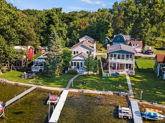 Welcome to your year-round lakefront oasis, a stunning 2-story, 2,208 square foot home that offers more than just a place to live; it's a lifestyle, an escape, and a place where memories are made. Whether you're a fan of swimming, boating, fishing, or simply enjoying the calming presence of the lake, you'll find it all at your doorstep.The open floor plan allows for seamless transitions from room to room, making it perfect for both intimate family gatherings and larger social events. The heart of this home is undoubtedly the four-season room that overlooks the lake. Step outside onto the composite deck with a motorized awning, an ideal spot for grilling, sunbathing, or simply taking in the fresh air. Your purchase includes the lot across the street, complete with a spacious 2-car garage with an upper level. This versatile space can be used for additional storage, a workshop, or even converted into a guest suite. The owner put in about $85,000 in improvements in the last few years. Some of the updates are New Generator, updated both bathrooms, New Floorings, New Motorized Awning, New Soffit and Fascia, New Trims and Doors, New Landscape....