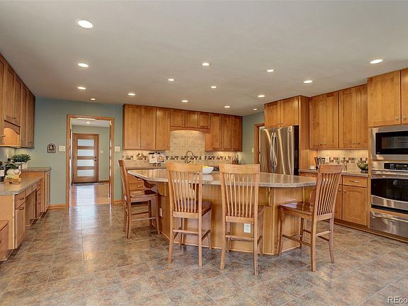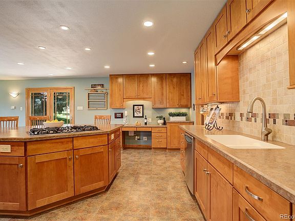 This brick ranch-style home near Olde Town Arvada can meet your lifestyle, whether it's recreation, convenience, or stay-at-home calm. For recreation, this home is situated on the Ralston Creek Trail, which connects to the Van Bibber Trail, providing miles of walking and biking opportunities. There is quick access to I-70 for mountain adventures. For convenience, one can walk to Old Towne Arvada, or down the new Garrison Garden Paseo Trail to the Arvada Beer Garden, Arvada Community Garden, shopping, and city parks. One can also hop onto the commuter rail to downtown Denver or the airport. If you are the stay-at-home type, you can enjoy the 600-square-foot expanded kitchen with an island that seats 8, sit on one of the 3 outdoor decks, or you can putter around in the 832-square-foot heated/air-conditioned garage out the back door with ample room for your hobby, running a small business, or all your toys, big & small. This home also offers backyard privacy with mature shade trees, spruce trees, and a privet hedge. The half-acre lot includes a pressurized irrigation water system, which runs the sprinkler system for the lawn, garden, fruit trees, and landscaping with an annual cost of less than $250 a year. The mature landscaping includes perennials and room to plant colorful spring and fall annuals.