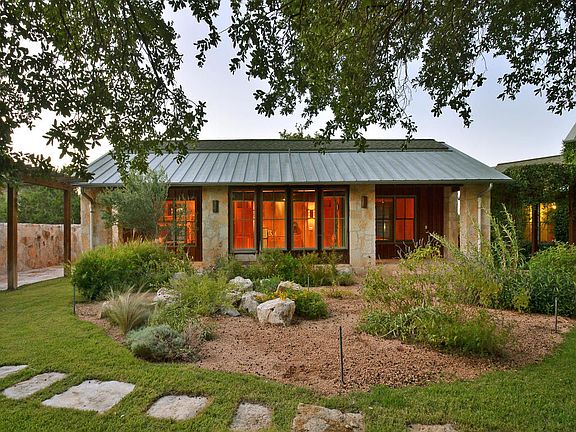 Incredible Texas modern home designed by Sinclair Black built in 2000 situated on a canyon edge with fabulous hill country views. Private hill country retreat featuring views of Dead man's canyon and stone stairs down to the fern covered grotto. 4,165 sqft home features master bedroom, office and guest bedroom in main home, plus 2 bedrooms and large bathroom in detached guest quarters. Stunning pool, 2 car detached garage, animal shelter, rain water harvesting and loads of charm!