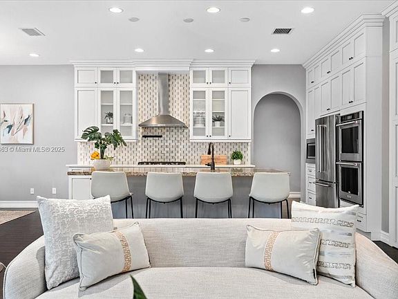 Fenced yardOversized islandHeated saltwater poolQuartz and granite countertopsCeiling-height cabinetryNatural gas double ovenRich wood floors