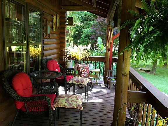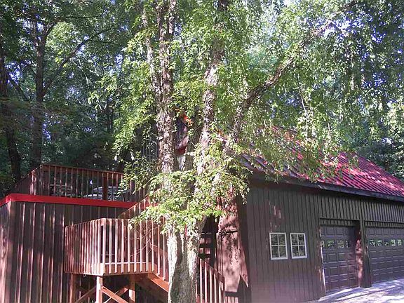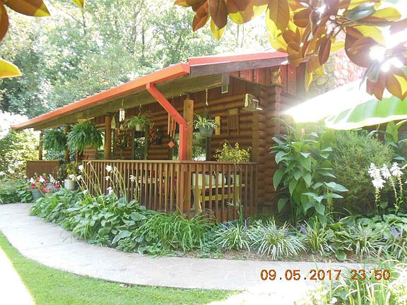 Remarkable home on 2.10 acres! One of a kind, red wood log cabin that has 3 bedrooms, 2 full baths, 2 stone fireplaces, two porches, great room/master suite has 16 foot ceiling with ventless fireplace, loft, library, bathroom with jacuzzi tub and walk in closet. The detached 3+ car garage has a workshop for a mechanics dream! The detached heated Garage features 2 additional bathrooms and upstairs cottage with deck that can be used for overnights or parties with full kitchen, jacuzzi tub, bar, family area and built in beds. Two-car carport, two sheds, fire pit area, Metal lifetime roof, parklike setting with bridges, swing set, basketball goal, trails and beautiful landscaping. Well and septic. This home and setting is something you don't see on the market often!! Priced to sell! Please call for a private showing!