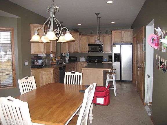 Outstanding Waterfront Lot on Cul De Sac. 3.5 car tandem garage w/dbl doors to rear yard. Vaulted Family Rm enhanced w/15 ft brick fireplace. Island Kitchen has newly installed granite, tile flrs, stainless steel, and large dining area that overlooks fenced yard and pond. Lower Level is plumbed for bath and divided into Rec Rm, Workout Area, and Storage. Incl Rainbow Jungle Gym and HMS Warranty.