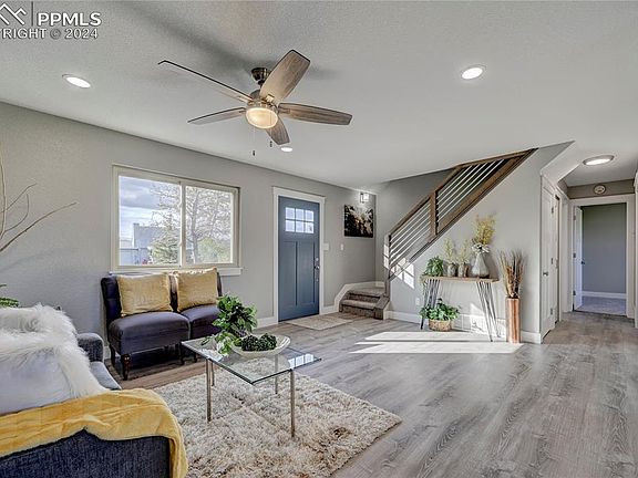 This lovely Little Ranches of The Fountain 2-story boasts 4 bedrooms, 2 bathrooms and a 2-car attached garage. The home welcomes you with fresh custom paint throughout and all new flooring. Large windows provide beautiful natural light in the living room. The eat-in kitchen has been completely renovated with custom tile backsplash, brand new stainless steel appliances and plenty of cabinet space. The dining space offers a walk-out to the wood deck with gorgeous mountain views. There are two bathrooms which feature fresh, custom tile work, updated fixtures and new integrated sink vanities. The large, fenced backyard offers plenty of space for summer barbecues with a 21x8 wood deck! Great location near shopping and restaurants!