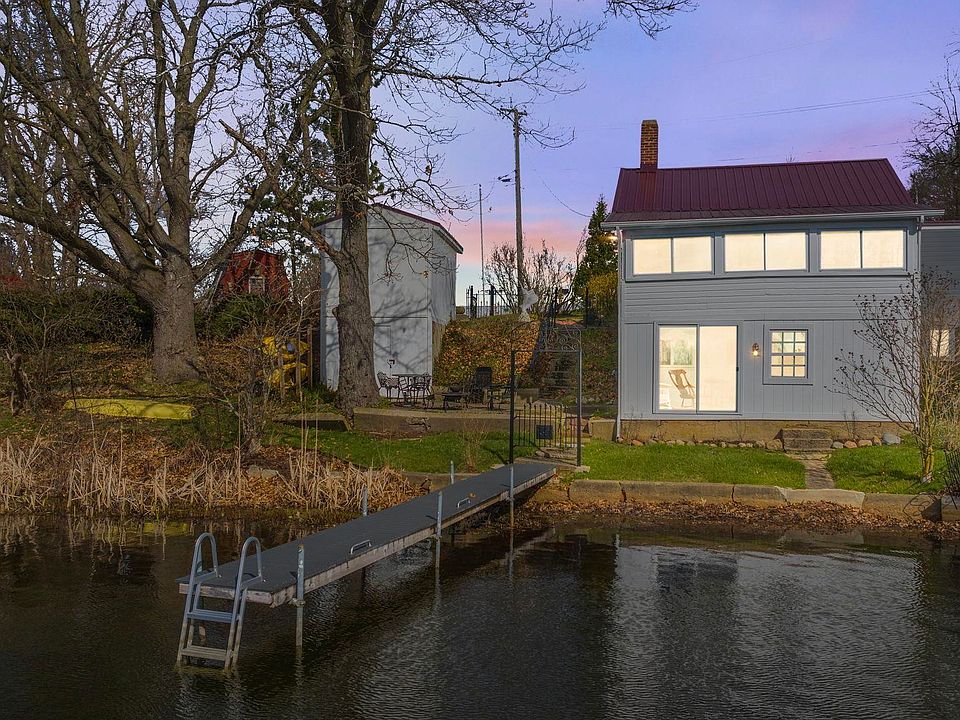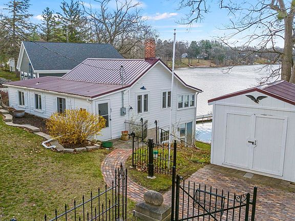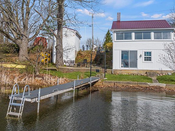 Are you looking for that Perfect Lake Cottage? A Quiet Getaway? Something quaint, cozy, a little rustic, which is EVERYTHING you would want in a lake cottage? This home has been completely restored with new sewer and lift station, all new electrical service and wiring, metal roof is only 10 years old, new plumbing! Exterior was restored using like boards and materials. Inside and outside has been freshly painted. All custom iron work featured on property. Storage building is 2 stories! 50' of lake front, composite decking material on pier. I can see having a cup of coffee or glass of wine by the lake in this Beautiful OASIS!!! I met several of the neighbors, all super nice. Make this your home today!!